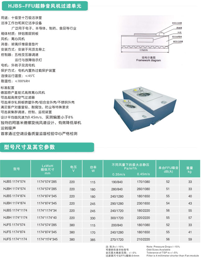 产品名称: HJBS-FFU超静音风机过滤单元